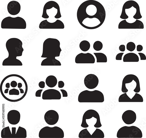 User Icons Silhouette Set – Male, Female, Profile, User Circle, Group People Avatars