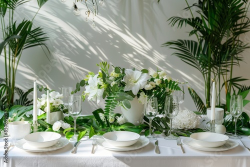 Valentine's Day, Romantic Evening. elegant dining table setting of beautiful luxury restaurant