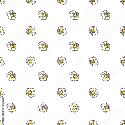 Vector background garden strawberries, berry flowers, berries fruits. Seamless pattern background
