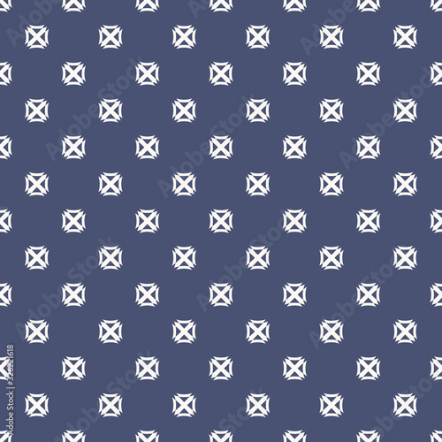 Vector geometric texture with small cross shapes, squares. Abstract minimalist seamless pattern. Navy blue and white background. Repeatable design for decor, fabric, wallpapers, package, cloth, prints