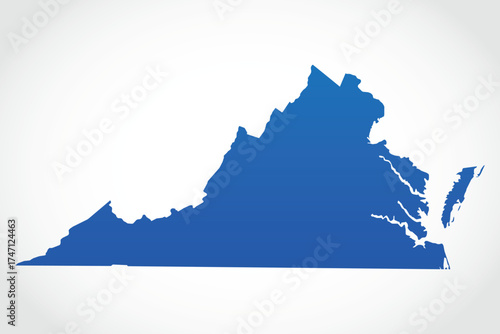 Vector graphic artwork suitable for print and web containing flat detailed map of VIRGINIA