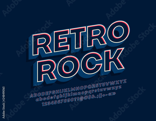 Vector icon Retro Rock with 3D stylish Font. Vintage Alphabet Letters, Numbers and Symbols