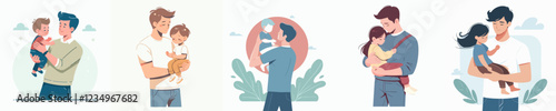 vector of a father holding his child