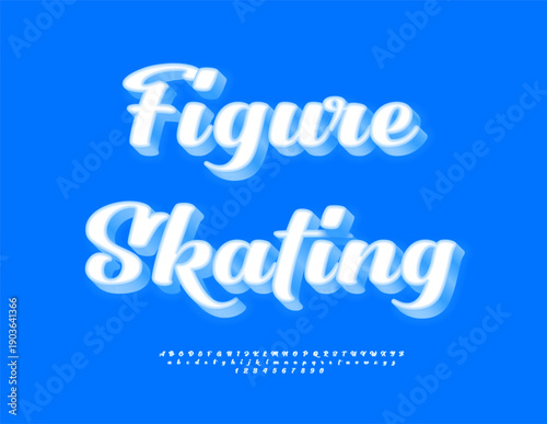 Vector Sporty logo Figure Skating. Winter White 3D Font. Calligraphic set of Beautiful Alphabet Letters and Numbers.