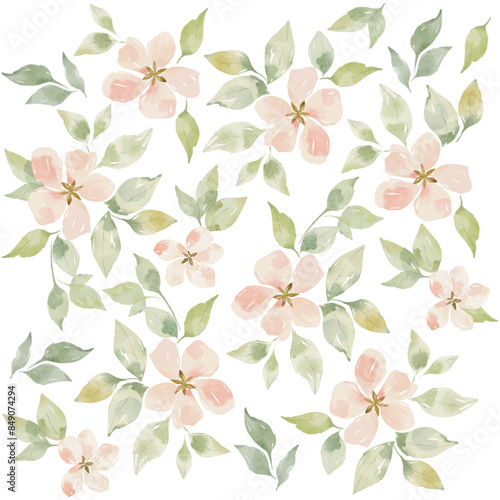 Vector watercolor floral seamless pattern design. Pattern with tiny pink flowers for fabric, wrapping paper design