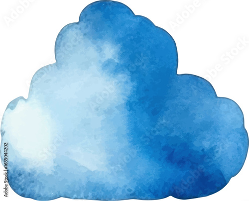Vector watercolor painted cloud. Hand drawn design elements isolated on white background.