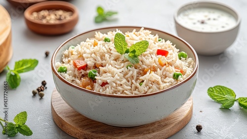 Vegetable Rice Pilaf with Mint Garnish, Healthy Meal rice pilaf vegetable rice vegetarian mint fresh
