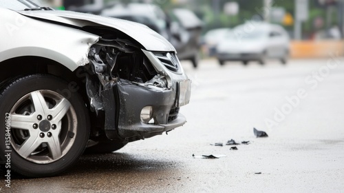 Vehicle collision incident urban intersection photo documentation rainy environment close-up viewpoint road safety awareness