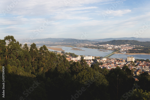 Viana do Castelo Portugal view over the city red orange roofs rooftops hill mountain sunset warm light Limia river Ponte Eiffel bridge