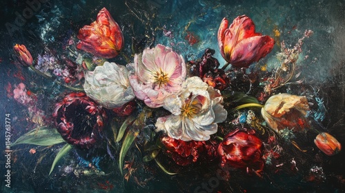 Vibrant Arrangement of Colorful Tulip Flowers in a Stunning Floral Composition