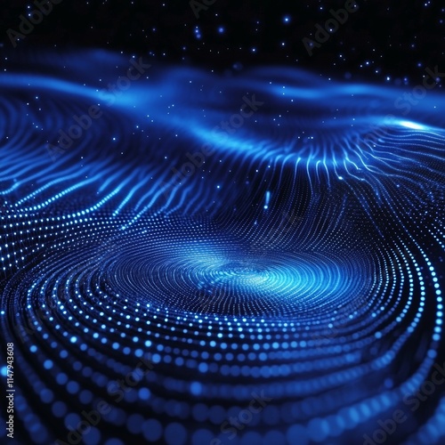 Vibrant Blue Grid of Dots and Waves Creating an Abstract Digital Pattern in a Dark Environment, Evoking Feelings of Depth and Movement