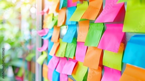 Vibrant Collaboration Closeup of Whiteboard with Colorful Sticky Notes Inspiring Teamwork and Innovation