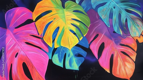 Vibrant colorful monstera leaf pattern