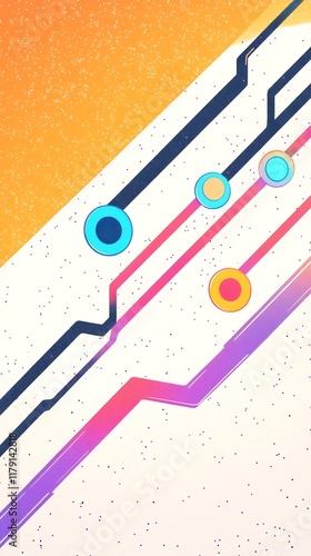 Vibrant Digital Painting: Abstract Circuitry Design on Warm Gradient Background. AI Generated