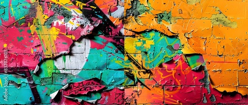 Vibrant Graffiti Wall Mural with Geometric Patterns and Neon Brush Strokes