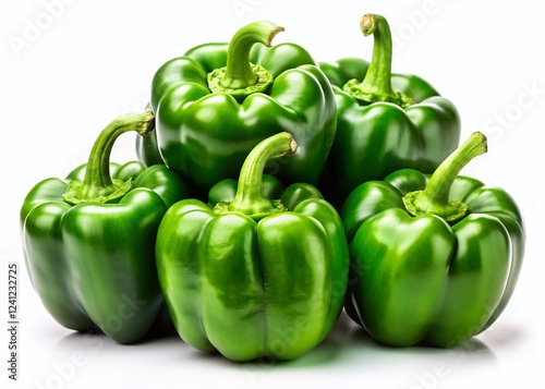 Vibrant Green Peppers on White Background - Fresh Produce Stock Photo