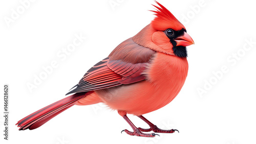 Vibrant Northern Cardinal bird standing alone on white background for seasonal marketing campaigns and corporate branding with copy space for text