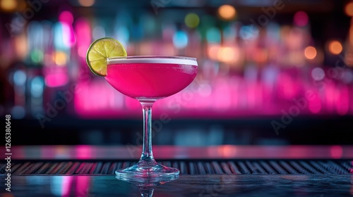 Vibrant Pink Cocktail with Lime Slice at a Trendy Bar