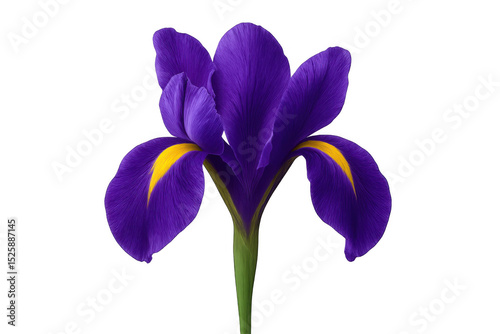 Vibrant purple iris blossom, transparent backdrop, ideal for design layouts
