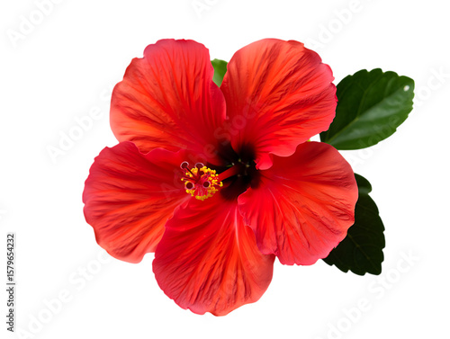 Vibrant red hibiscus flower isolated on transparent background
