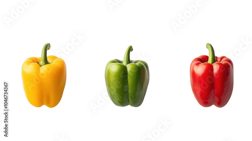 Vibrant trio of bell peppers: yellow, green, and red on black background