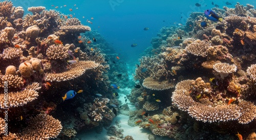 Vibrant Underwater Coral Reef Scene with Colorful Fish Stunning Marine Life