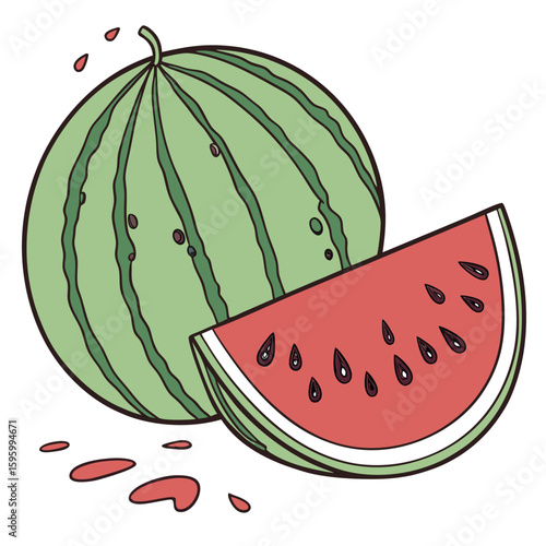 Vibrant watermelon slice graphic with seeds and leaf accent