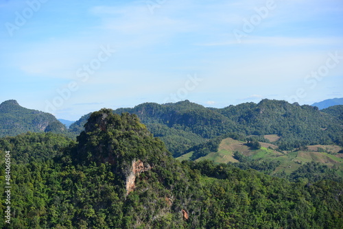 Village view in the forest area and fresh green mountains. There is nature in Thailand.