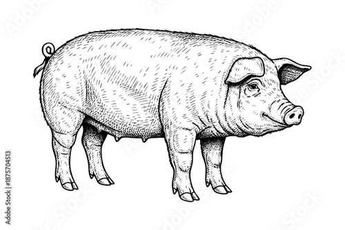 Vintage pig engraving black ink farm animal illustration isolated