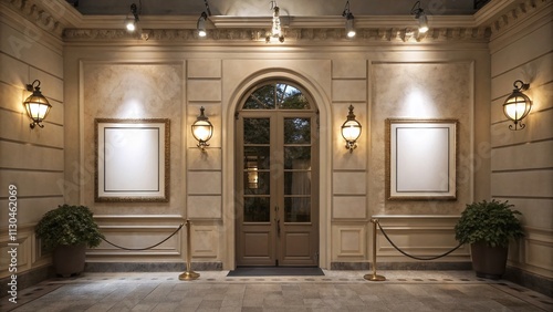 Vintage Style Photography of a Chic Entryway with Light Taupe Walls Showcasing Two Empty Frames Under Bright Spotlights for Elegant Home Decor Inspiration