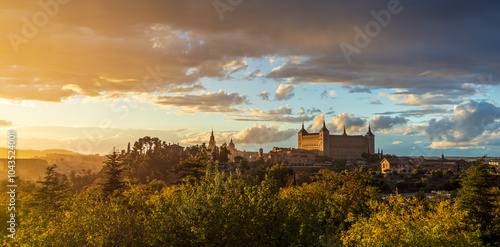 Vista panorámica del Alcázar de Toledo al atardecer.