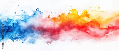 Vivid watercolor painting with dynamic blend of blue red and yellow hues creating a vibrant artistic expression on white canvas