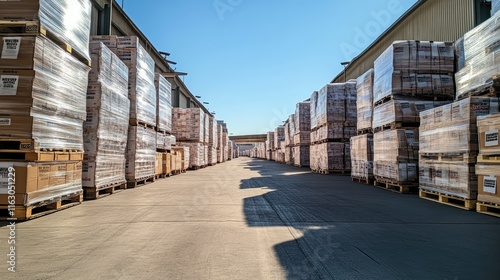 Warehouse Inventory Abundance: Pallets of Goods Ready for Distribution