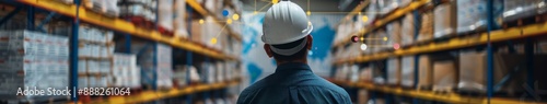Warehouse Worker Analyzing Global Supply Chain Map: Pinpointing International Suppliers for Efficient Distribution Networks