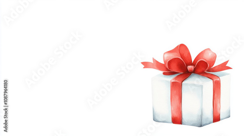 watercolor white gift box with red ribbon and bow, perfect for celebrations and special occasions. This charming design evokes feelings of joy and anticipation