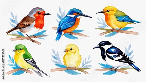 Watercolor Bird Collection Six Colorful Avian Illustrations