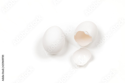 White egg and yolk.. Raw eggs on white background.