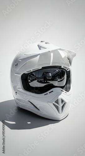 White Motorcycle Helmet with Mirrored Visor on a Clean Background.