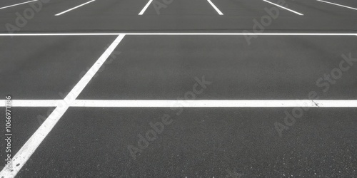 White stripes painted on black asphalt surface in shopping mall parking lot, urban