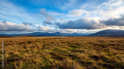 Wide Expansive Landscape of Rolling Hills and Cloudy Sky Underneath a Beautiful Horizon : Generative AI