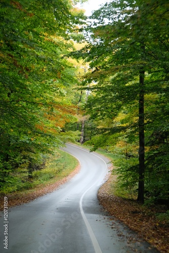 Winding road through autumn forest