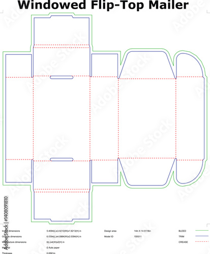 Windowed FlipTop Mailer Box Packaging Design Template Diagram