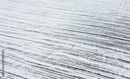 Winter landscape with texture of snowy empty field