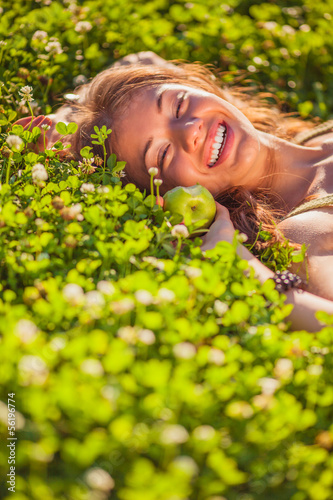 woman lying on grass