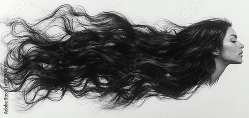 Woman with long flowing black hair. Beautiful, elegant and mysterious.