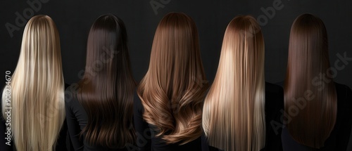 Woman with long, straight hair showcasing multiple colors. Free copy space for text.
