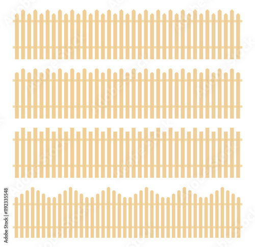 Wooden fence set isolated on white background