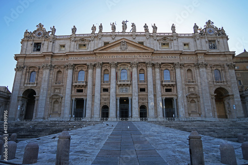 World's largest The Papal Basilica of Saint Peter front view with balcony before sunset, Vatican