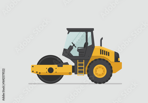 Yellow and Black Road Roller Construction Vehicle Illustration.