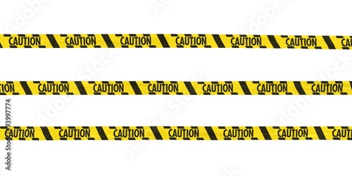 Yellow and Black Striped CAUTION Tape Lines Isolated on White